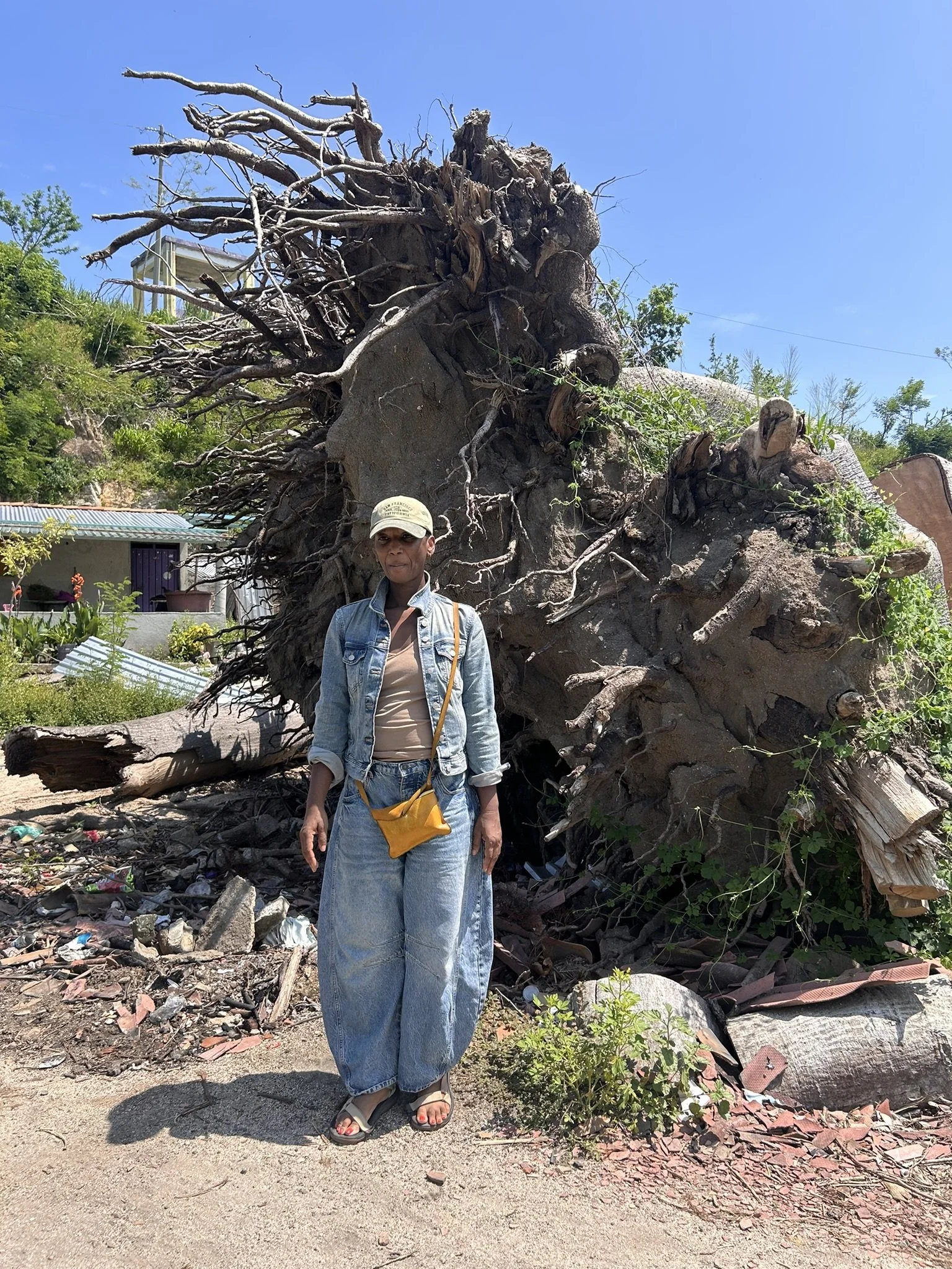 Raíces de un árbol de Pochote caído durante el huracán Erick, 2025